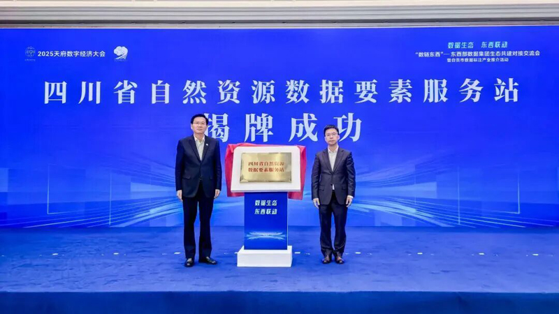 日前,2025天府数字经济大会在成都召开。会议期间,集团数科公司“四川省自然资源数据要素服务站”正式揭牌。省发展改革委副主任、省数据局局长、省大数据中心主任顾红松与集团党委委员、职工董事、工会主席陈军华共同揭牌。(四川能源发展集团)