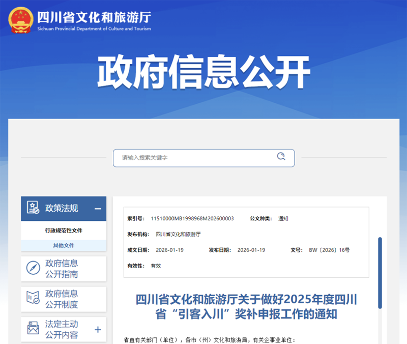 引客入川!最高奖补500万