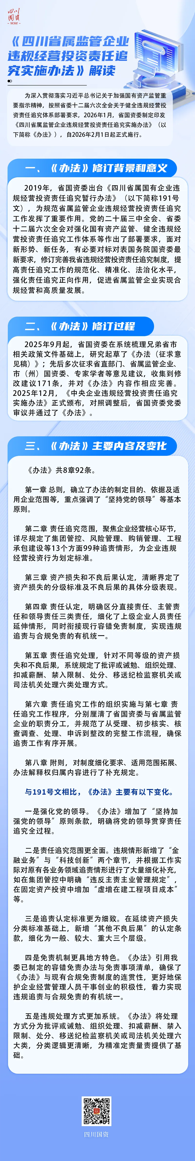 四川出台省属监管企业违规经营投资责任追究实施办法