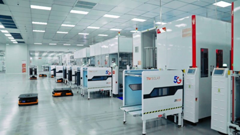 走进成都金堂通威太阳能超级工厂,巨大的生产车间里,机器人有序穿梭,全自动化产线高速运转。“在电信5G赋能下,我们智能生产线用工减少约62%,能耗降低约30%,生产效率却提升了1.6倍,降低能耗的同时进一步降本增效。”基地总经理助理庞三凤自豪地介绍着数智化带来的巨变。