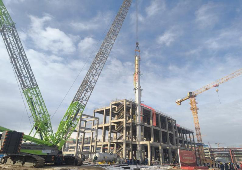 12月14日,中国化学工程七化建甘肃巨化高性能硅氟新材料一体化项目迎来关键节点——首件大件设备T22104四氯化碳塔一次性吊装成功。该大型塔器设备高40米,吊装总重量48吨,是项目甲烷氯化物装置的核心设备之一。