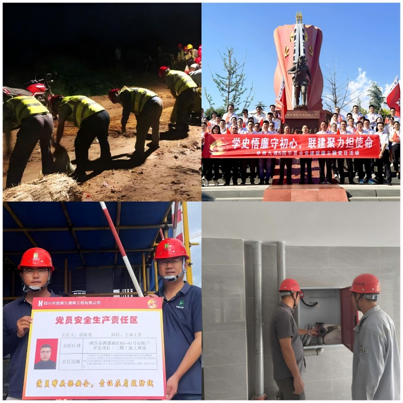 发展是企业永续经营的生命线,公司各级党组织紧扣高质量发展主线,将党建品牌活力融入生产经营管理,充分发挥基层党组织战斗堡垒作用。华西九公司党总支聚力打响“九久红”党建品牌,坚持以党建共建为纽带,深耕凉山区域市场,积极构建“四位一体”合作“朋友圈”,持续深化与股东单位、地方党委、政府、业主单位及行业协会的协同联动,通过组织共融、资源互通、发展共赢,大力创造良好的外部环境,有力推动党建优势转化为市场竞争优势。四分公司遂宁仁里项目党支部深化“安居先锋·匠心仁里”品牌效应,在施工地块划设“党员责任区”,在“工程质量提升月”“安全生产月”等专项行动中,责任区党员坚持每日巡查、每周复盘,累计开展现场巡检100余次,精准排查并整改隐患23处,实现建设全过程“零事故”、关键工序“零缺陷”,为施工筑牢红色防线。重庆分公司党总支以“5S”党建品牌为引领,在承建河南省首座县级市大商业综合体建设期间,党员带头实行“白+黑”“雨+晴”连续作业,严格倒排工期、克服特大暴雨等极端天气,奋力保障项目高效推进,如插入中原腹地的一面旗帜,成为公司打开中原市场的重要一棋。