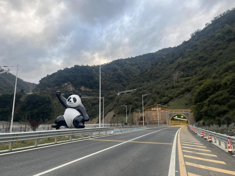 穿越97公里大熊猫国家公园路段时,九绵高速以95%的超高桥隧比、仅0.027%的公园面积占用率,实现对大熊猫栖息地近乎零割裂的保护;施工中,弃渣场从原计划83处优化至19处,28座隧道推广“零开挖”进洞技术,让洞口原生植被完好留存——通车后,野生大熊猫多次在沿线“亮相”,成为生态保护成效最鲜活的注脚。
