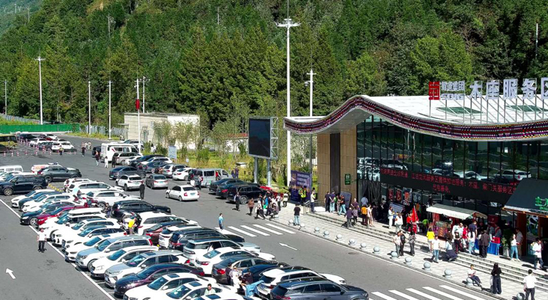 便捷体验更离不开“智慧赋能”:在沿线收费站融入大熊猫、羌族文化等当地元素,34台“智慧收费机器人”让通行效率较传统模式提升20%;18处互通立交、6对特色服务区串联起沿线乡镇——九寨沟柴门关、平武木座服务区提供新能源车充电服务,江油李白故里服务区满足加油需求,精准对接司乘“续航焦虑”。