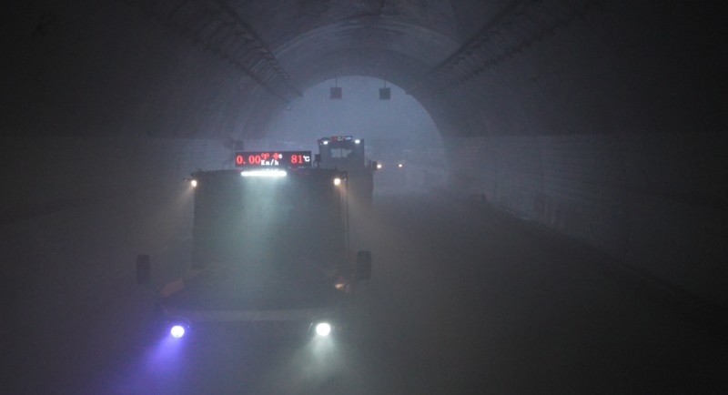 传统隧道沥青路面施工中散发的浓烟,会聚集有害物,降低能见度