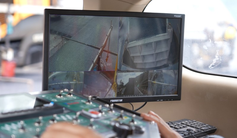 远程遥控摊铺技术的显示器上,可以清晰地看到隧道洞内的画面