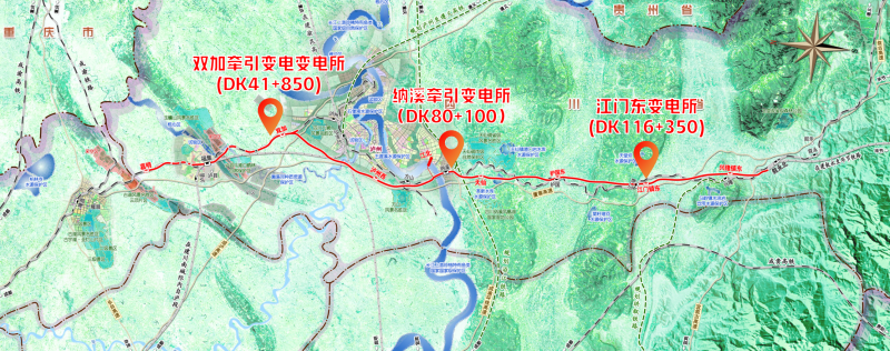 牵引变电所被称为牵引供电系统的“心脏”,是整条线路的动力中枢,隆泸叙铁路建设的双加、纳溪、江门东3座牵引变电所均匀分布于项目全线,采用两路110千伏进线电源,两回电源互相独立。牵引变电所变压器单台容量25兆伏安,将外部电网提供的110千伏交流高压电变换为27.5千伏,通过馈线输送到铁路线上方架设的接触网为电力机车供电,是确保铁路列车安全稳定运行的核心设施。