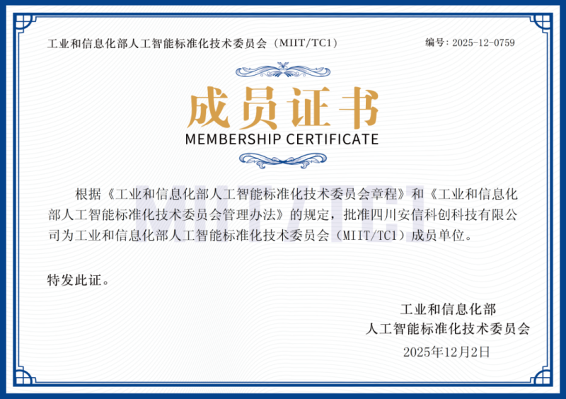 工业和信息化部人工智能标准化技术委员会是工信部成立的第一个标准化技术委员会,其工作组成员单位涵盖龙头企业、科研院所、高等院校等创新主体,是人工智能领域行业标准起草、技术审查等的核心协调机构,旨在构建科学完善的人工智能标准体系,引领产业健康有序发展。此次入选,标志着四川安信科创公司在安全应急领域智能化解决方案探索和融合创新上的技术积累、行业实践及标准化研究能力获得国家权威机构认可。