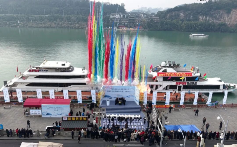 本次仪式由阆中市人民政府与四川省港航投资集团有限责任公司(以下简称“省港投集团”)旗下四川省滨水城乡发展有限责任公司(以下简称“滨水城乡公司”)联合主办,四川阆中水城农业发展有限公司(以下简称“阆中水城公司”)具体承办。此次首航,是滨水城乡公司积极响应省委、省政府关于推进文化和旅游深度融合发展系列部署、服务“水路建设三年大会战”发展战略的关键实践。按照省委、省政府擘画的蓝图与方向,公司启动嘉陵江水上旅游观光项目,旨在深度挖掘这条母亲河的生态价值、文化价值与旅游价值,让更多人能够亲水而行,领略“嘉陵第一江山”的壮美,体验“城在林中、水在绿中、人在景中”的诗意画卷。千里嘉陵江,自古便是贯通南北的“黄金水道”与“人文风光之道”。航线的开通,是省港投集团充分发挥省级平台优势、彰显“水运主力军”担当,助力区域交旅融合发展的生动缩影。它旨在以水为脉、以航为线,将沿线富集的文旅资源串联成链,构建“水岸联动、交旅共融”发展新格局。