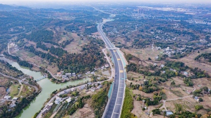 成南高速扩容项目路线全长240公里,总投资368亿元,全线采用“原路加宽为主、局部新建复线”方式建设。项目分为两段:主线起于南充东观枢纽,止于成都螺蛳坝枢纽,长215.5公里;成都入城复线段长24.5公里,已于2024年9月13日率先建成通车。全线通车后,成南高速将成为四川省最长的八车道高速公路,将成为连接成都、遂宁、南充最为便捷的高速通道,进一步强化成渝地区双城经济圈的核心走廊功能。它不仅能够极大缓解长期存在的交通拥堵,提升G42四川段的整体通行效率,更深层次的意义在于,强化成都作为国家中心城市对川东北地区的辐射带动作用,缩短时空距离,促进人才、资源等要素高效流动,为沿线地区融入成渝主轴发展带、优化区域空间结构、改善经济发展条件提供坚实的交通支撑。