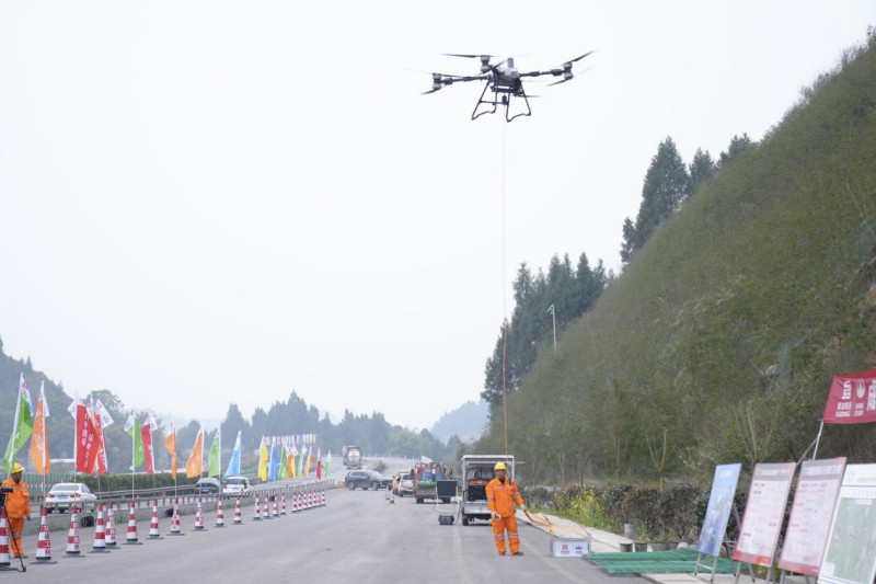 成南高速扩容项目广泛应用了一系列“黑科技”,引领交通建设向更加安全、高效、绿色的方向迈进。在高边坡施工中,启用无人机运输隔离栅,效率提升5倍以上;引入新泽西护栏全自动化生产线,实现智能化管控,质量与效益双赢;采用超声波智能摊铺整平机进行路面施工,平整度合格率提升至99%。