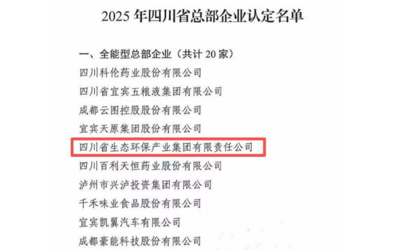 近期,四川省2025年总部企业认定名单正式公布,四川省生态环保产业集团有限责任公司“上榜”,获评四川省全能型总部企业。