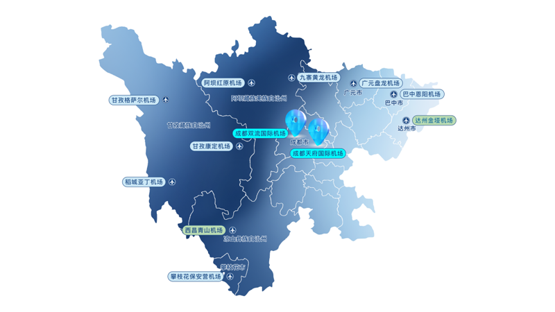 枢纽建设成效斐然,天府机场建成投用,双流机场完成提质改造;枢纽旅客吞吐量顺利突破9000万大关,货邮吞吐量迈上100万吨台阶;国际地区航线突破100条。