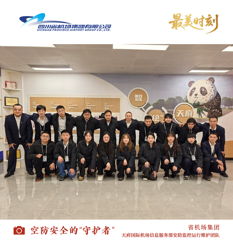 成都天府国际机场信息服务部安防监控运行维护室是机场空防安全的守护者。团队日夜坚守,勠力同心,筑牢空防安全底线,以实际行动诠释责任,为机场核心使命构筑起坚实可靠的技术屏障。2025年荣获CAPSE创新奖、CAPSE民航质量提升实践大赛钻石奖、四川省二等QC成果、集团QC优秀奖、分公司QC三等奖等多项行业级、省级成果,用智慧手段为机场安全添砖加瓦。展望未来,天府机场安防科室将继续以安全为基、以创新为翼,坚定守护空中门户的绝对安全,不断追求卓越,为天府机场的高质量发展贡献更多力量。