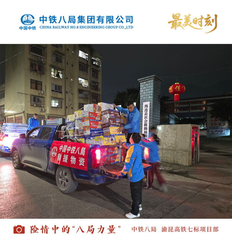 2025年2月8日,受暴雨影响,四川省宜宾市筠连县沐爱镇金坪村2组突发山体滑坡。险情发生后,位于宜宾市筠连县的中铁八局渝昆高铁七标项目部立即启动应急预案,及时与地方政府、业主单位汇报,主动请缨,并迅速组织50余名经验丰富的施工人员成立应急抢险队,调派10台挖掘机、装卸车等大型机械设备机及小型机具若干,随时待命;同时,采购100箱矿泉水、100箱方便面、雨衣等救援物资,于9日18时许运送至筠连县社会救助福利中心安置点。项目部志愿服务队协助安置点工作人员做好受灾群众的安置安抚工作,为助力灾区早日重建,贡献八局力量。