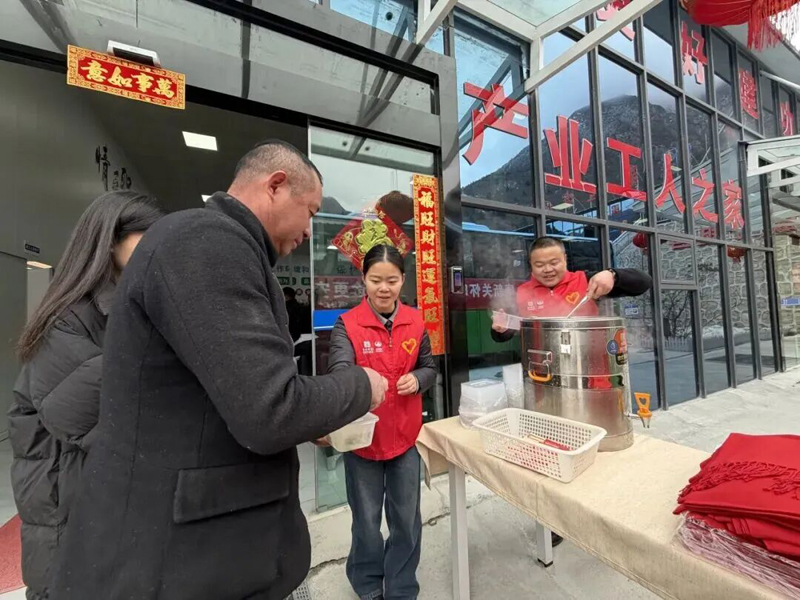 蜀道集团累计投入服务人员4.3万人次,服务对象超34.2万人次,为司乘人员送上免费热水、汤圆水饺等;受理司乘人员12122电话咨询7799次,在成德南高速金堂服务区等多个服务区开展“免费年夜饭”等特色暖心活动。