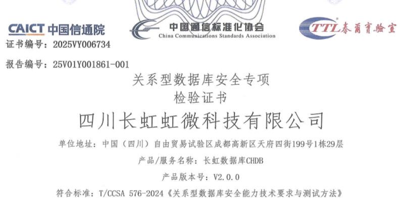 近日,长虹自主研发的长虹数据库(CHDB)顺利通过中国信息通信研究院组织的“可信数据库”安全专项评测,与达梦、华为云GaussDB、阿里OceanBase等国产数据库产品共同获得权威认证。评测结果显示,CHDB在安全性、稳定性与工程化能力方面已达到国内关系型数据库的高标准要求,标志着该产品已具备承载企业核心业务系统的安全能力,为关键领域数据库国产替代提供了可信选项。