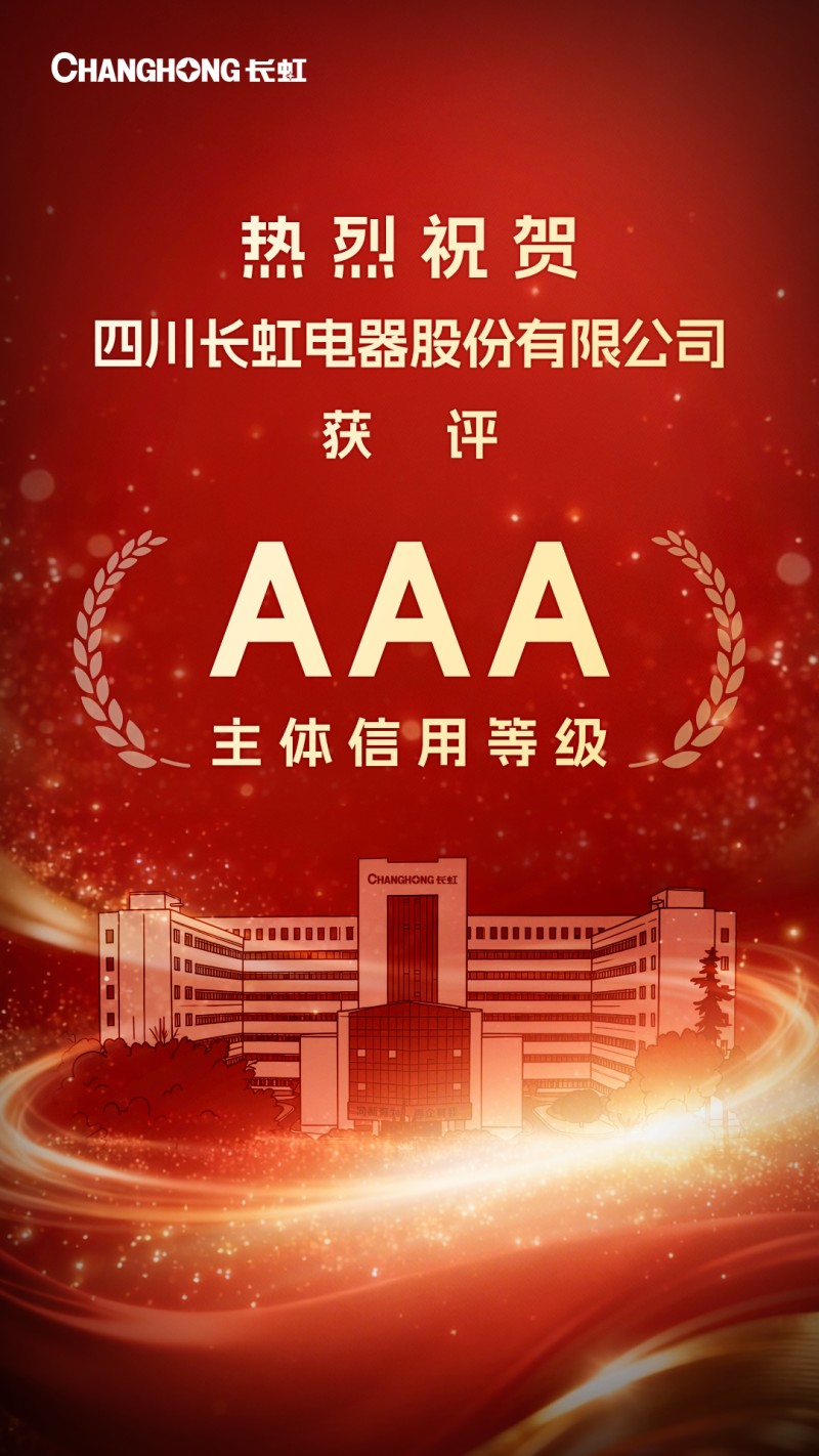 此次获评AAA信用等级不仅是对四川长虹财务稳健性、经营效率、市场竞争力以及社会责任感等多方面的全面认可,更将有效提升公司在金融及资本市场上的形象,进一步拓宽融资渠道,为公司的长远发展提供有力保障。