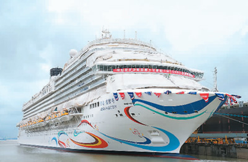 2023年,中国还摘取了造船业的“第三颗明珠”。总吨位13.55万吨,长323.6米,宽37.2米,最大高度72.2米;全船搭载107个系统、5.5万个设备,包含2500万个零部件,完工敷设4750公里电缆……11月4日,中国首艘国产大型邮轮“爱达·魔都号”正式命名交付。