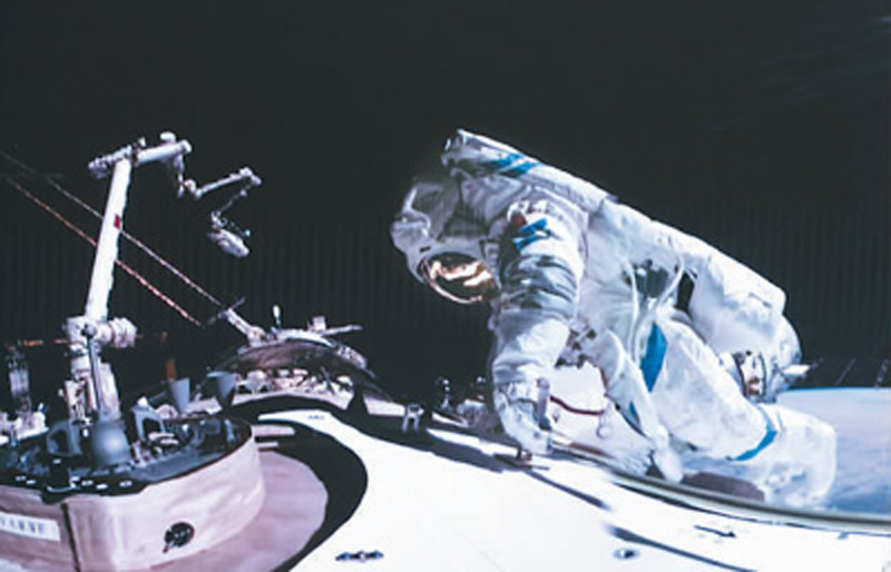 12月21日在北京航天飞行控制中心拍摄的神舟十七号航天员唐胜杰开展舱外操作的画面。(新华社发)