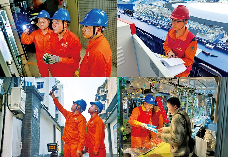 “时代楷模”国网四川电力成都高新连心桥党员服务队是以共产党员为骨干、依托基层一线班组站所组建的先锋团队。党的十八大以来,高新连心桥党员服务队深入学习贯彻习近平新时代中国特色社会主义思想,牢记习近平总书记殷殷嘱托,始终坚持人民电业为人民,以为民服务践行初心使命,让党的旗帜在小区楼宇高高飘扬。图为高新连心桥党员服务队队员日常工作场景的拼图。 四川省委宣传部供图