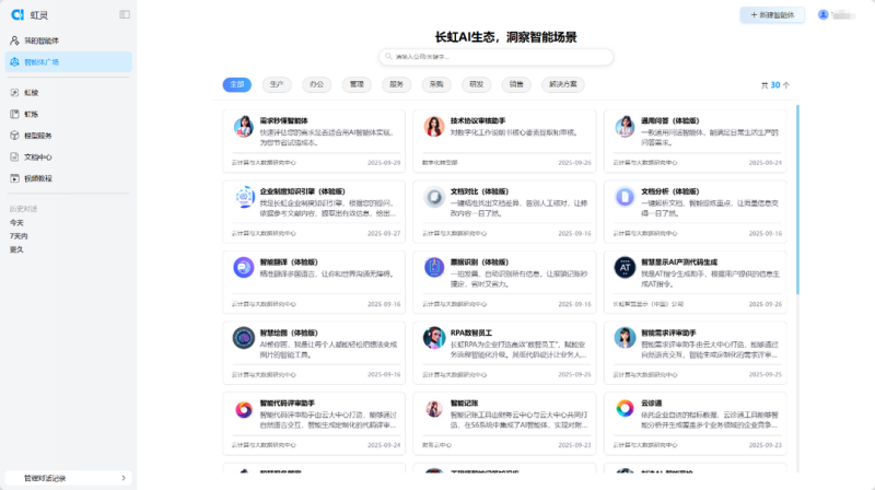 作为中国制造业领军企业,在以AI技术为核心的新一轮比拼中,长虹敏锐把握技术变革机遇,将 AI技术与企业全场景运营深度融合,构建起以“AI+运营”为核心的智能生态体系,打造了长虹企业级智能体开发平台(以下简称“长虹AI中台”),推动企业运营效率、管理能力与核心竞争力全面跃升。