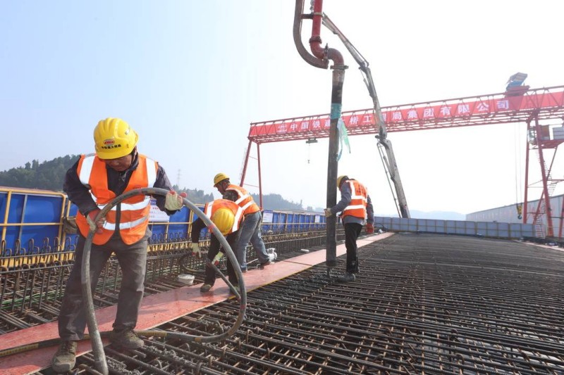 11月27日,在位于四川遂宁市船山区桂花镇的绵遂资内铁路制梁场,该项目首榀预制混凝土箱梁成功浇筑完成,项目建设主体工程正式进入上部结构预制阶段。