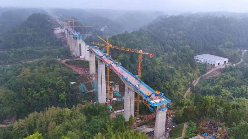 成渝中线高铁一碗水双线特大桥合龙。图据封面新闻