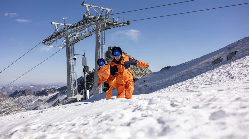 国网阿坝黑水县供电公司芦花供服站员工来到黑水县达古冰川景区,对景区用电线路及设备开展专项检查。(龙永俊 摄)
