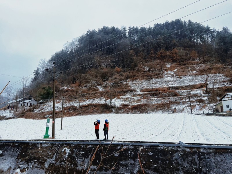 国网广元供电公司曾家供电所员工对10千伏曾平线开展冰雪天气覆冰监测。(杨笃君 摄)