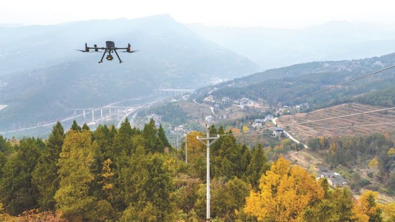 国网巴中供电公司利用无人机对电力线路进行安全巡视检查。王志刚 摄