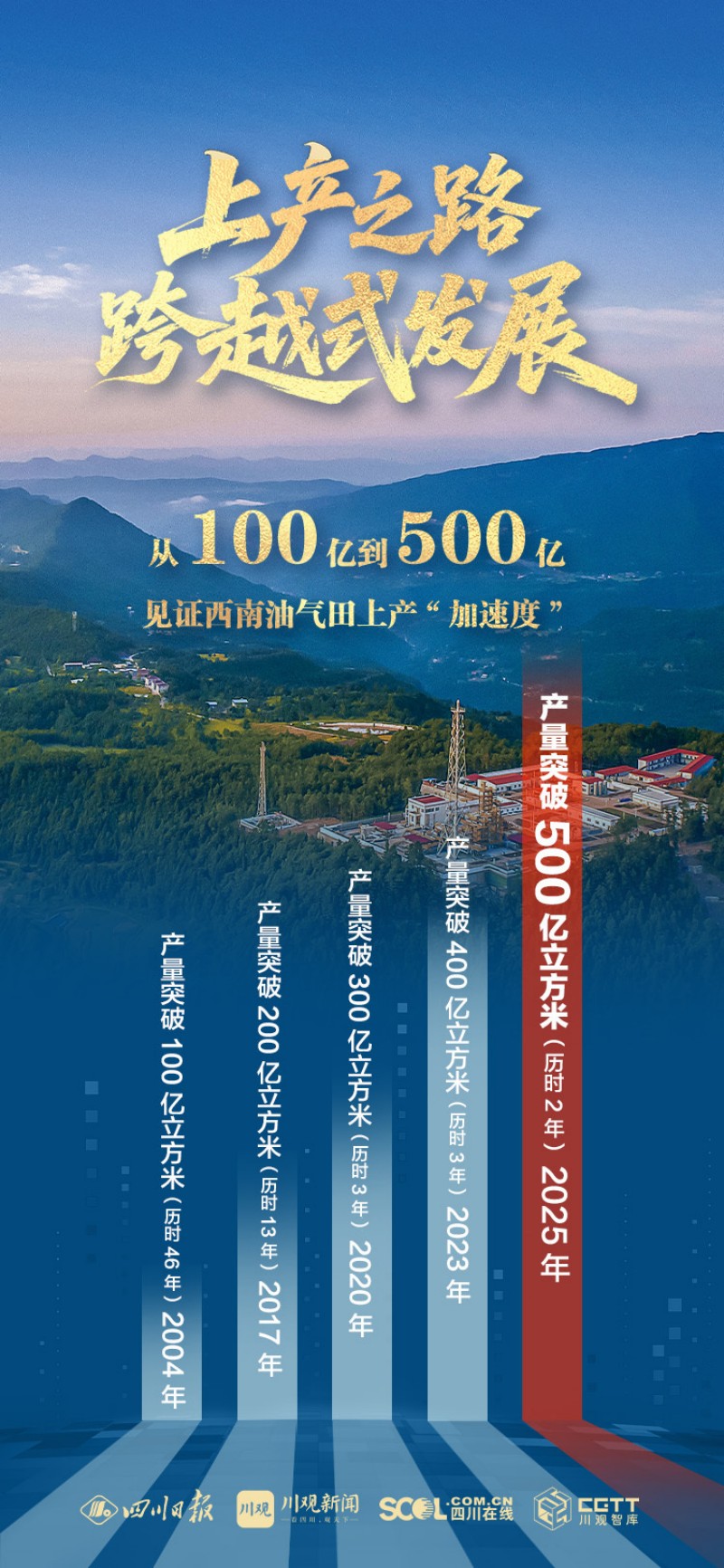 中国石油西南油气田公司2025年天然气年产量实现500亿立方米,油气当量突破4000万吨,均创历史新高。这标志着我国西南地区首个500亿立方米级大气区全面建成。