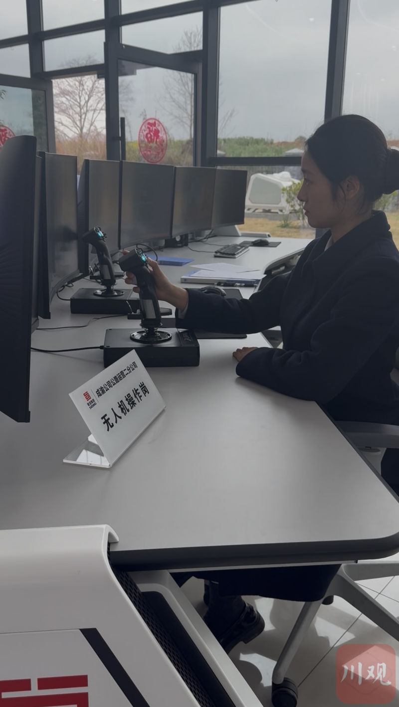 在“智慧云仓”大厅的另一侧,无人机操作岗的杨靖涵已经可以熟练驾驭无人机,“106公里,20多分钟一个来回,日常巡查方便多了。”