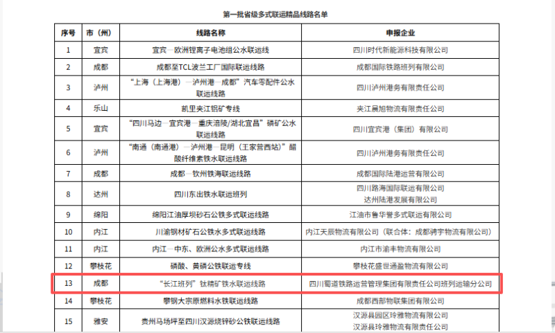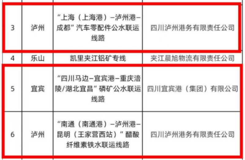 近日,四川省交通运输厅正式公示了第一批省级多式联运精品线路名单,四川港口公司成功入选三条线路,标志着公司在推动多式联运高质量发展方面取得了显著成效。(省港投集团)