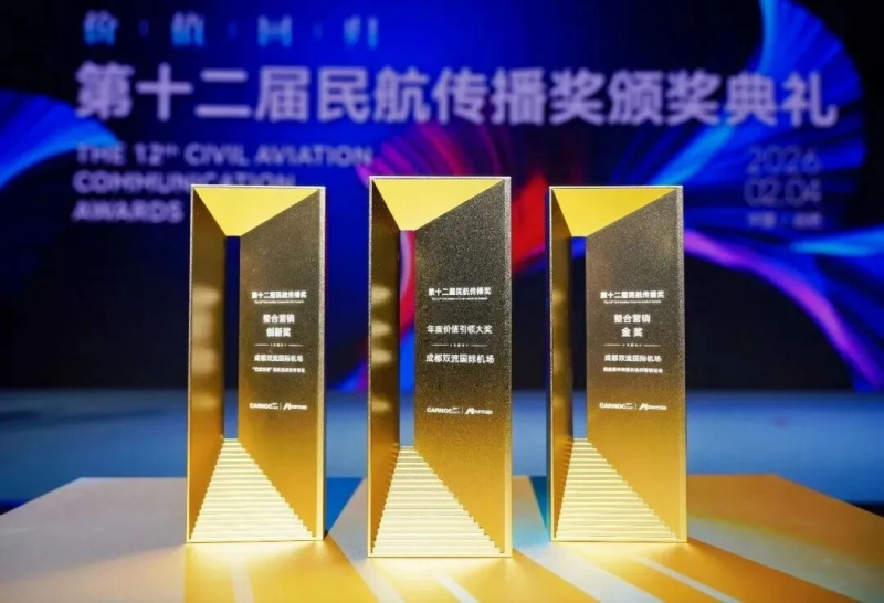 近日,成都双流国际机场在第十二届民航传播奖颁奖典礼上获得“年度价值引领大奖”,选送的《进出藏中转服务协同营销案例》《“巴适空港”服务品牌发布活动》分别摘得品牌营销单元整合营销金奖、创新奖。(省机场集团)