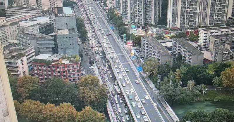 经调查,刃具立交高峰小时流量达6837辆/小时,已超出设计通行能力,高峰时段交通拥堵较为严重。尤其在今年11月12日驷马桥隧道开始半幅封闭施工,实行机动车进城单向交通后,府青路二段出城方向交通流量增加约30%,高峰时段车流排行长度由之前的300米增加至1500米,交通拥堵指数6.607,呈严重拥堵状态。