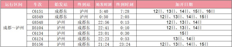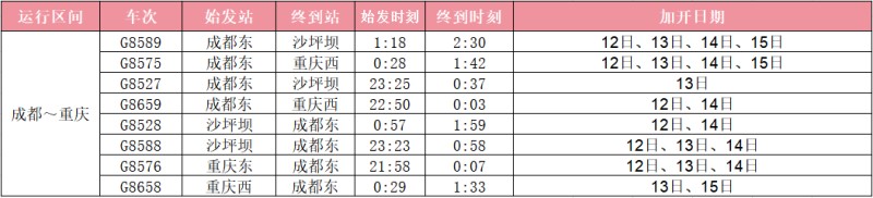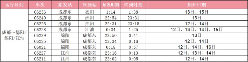 铁路部门将根据客流实际动态加开列车,列车开行信息和服务资讯具体情况请以12306官网或站车公告显示为准。