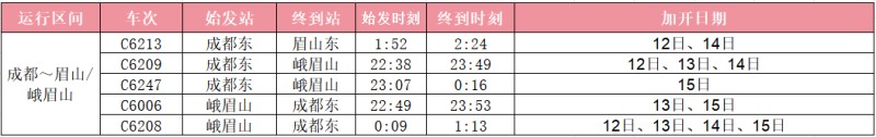 2月6日起,成都东至眉山东、乐山、峨眉山等站的C5651、C6273等10趟动车享5至6折优惠