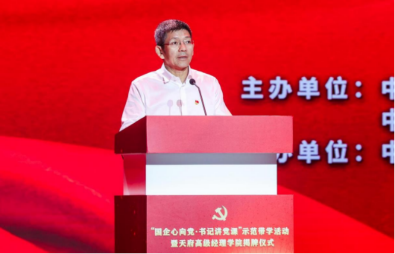 为深入推动习近平新时代中国特色社会主义思想在国资国企落地落实,进一步发挥国有企业基层党组织书记示范带头作用,切实把党建优势转化为发展优势,10月15日,由省委组织部、省国资委党委联合主办,四川发展(控股)公司党委承办的“国企心向党·书记讲党课”示范带学活动暨天府高级经理学院揭牌仪式在成都举行。省国资委党委书记张正红出席并致辞,中国大连高级经理学院常务副院长、党委副书记薛徽致贺词,省委组织部副部长、省委党建办主任陈冠松,省委统战部副部长万群,省总工会二级巡视员李龙昊,团省委副书记张志君出席活动。