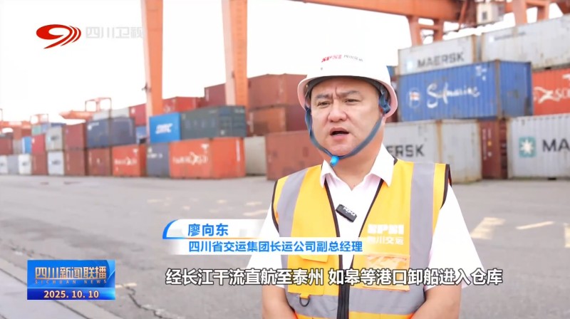 四川省交运集团长运公司副总经理 廖向东:这些货物我们先通过公路运输至宜宾港,卸车装船后,经长江干流直航至泰州、如皋等港口卸船进入仓库,再按需求公路配送至客户单位,实现了多式联运的一单到底,较单纯全程陆运破损率降低50%,综合成本下降30%。
