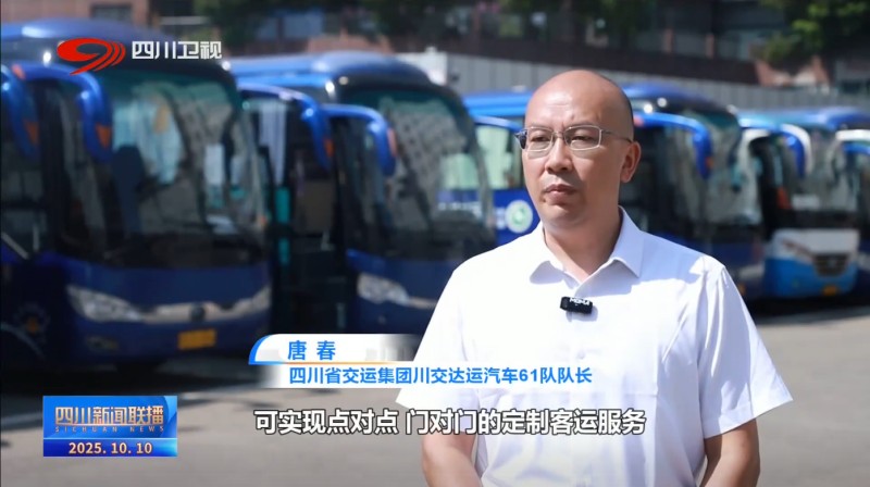 四川省交运集团川交达运汽车61队队长 唐春:旅游客运不受线路和区域的限定,可实现点对点、门对门的定制客运服务。我们将继续强化交通与文旅研学深度融合,大力发展旅游客运。