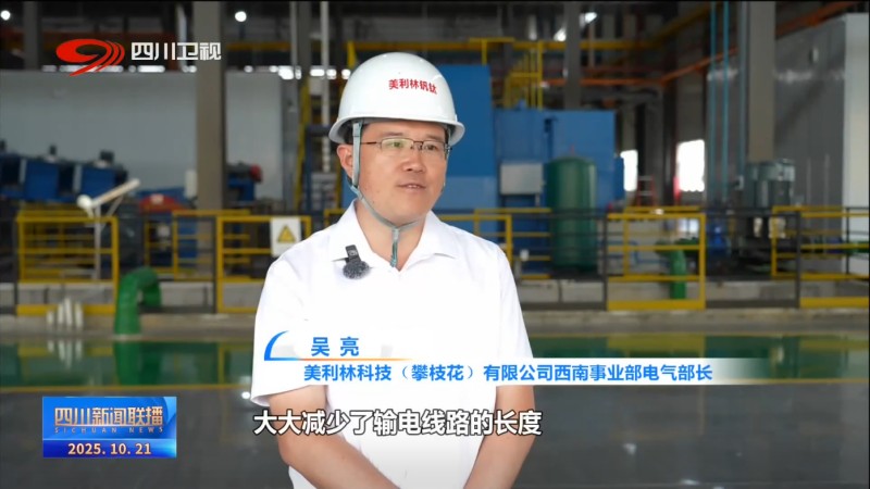 美利林科技(攀枝花)有限公司西南事业部电气部长 吴亮:大大减少了输电线路的长度,节省了1.1亿元的建设成本,我们将生产计划调整为白天峰段运维保养,夜间谷段满负荷生产,节约用电成本50%,全年节约用电成本7000余万元。