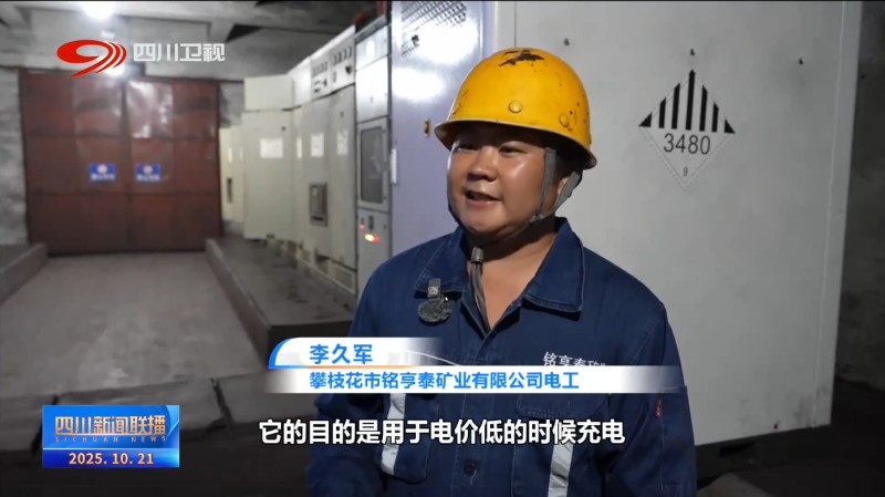 攀枝花市铭亨泰矿业有限公司电工 李久军:这两台储能设备,相当于两个大的充电宝,它的目的是用于电价低的时候充电,电价高的时候放电,降低我们的用电成本。