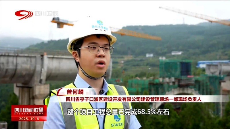 四川省亭子口灌区建设开发有限公司建设管理现场一部现场负责人 曾何麟:整个项目工程总量已完成68.5%左右。全线5200名工人坚守岗位,抢抓施工黄金期。