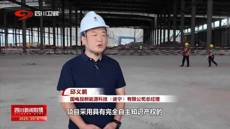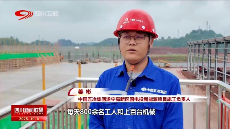 中国五冶集团遂宁高新区国电投新能源项目施工负责人 姜彬:每天800余名工人和上百台机械,分段平行施工,在确保安全和质量的前提下,力争十月底完成1号、2号厂房和辅房主体施工。