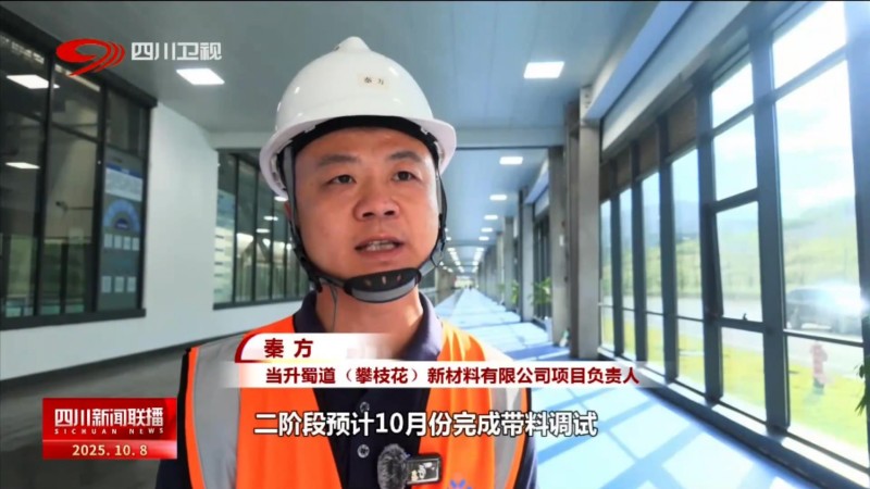 当升蜀道(攀枝花)新材料有限公司项目负责人 秦方:二阶段预计10月份完成带料调试,11月份实现全面投产。待一、二阶段全部满产后,项目年产值将达到50亿元。