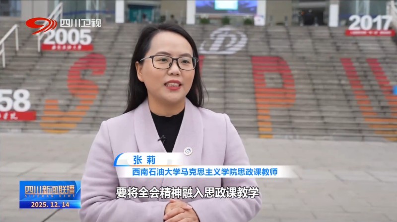 西南石油大学马克思主义学院思政课教师 张莉:要将全会精神融入思政课教学,不断增强学生对党的创新理论和制度优势的理解与认同,引导青年大学生为治蜀兴川,为推动中国式现代化建设,为保障国家能源安全“加油争气”。