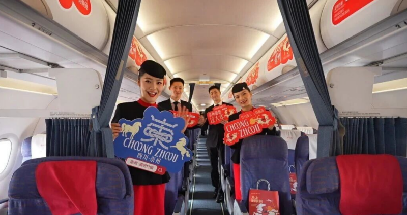 非遗传承人万米高空现场教学,“航空+文旅”无缝衔接。2月10日下午,川航×崇州“云端非遗”主题航班圆满完成首飞!