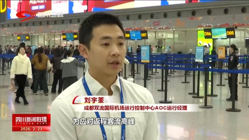 民航方面,春节假期期间,成都国际航空枢纽起降航班约1.7万架次、旅客吞吐量约264万人次,较2025年同期分别增长7.1%、9.4%。单日最高旅客量31.2万人次。
