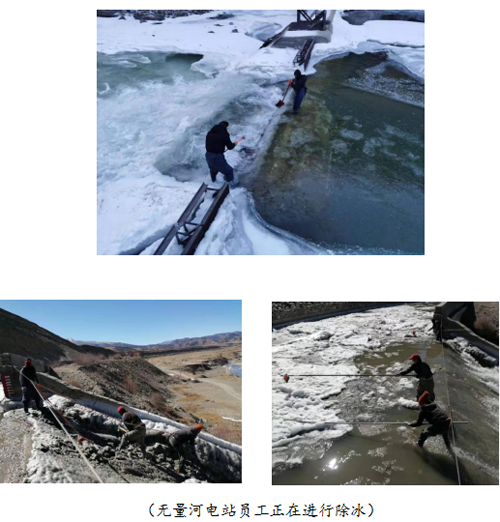 电站大坝大面积结冰是电力生产的最大阻碍,低温雨雪冰冻天气是对保电工作的严峻考验。自进入冬季以来,雅安、甘孜地区长期保持零下二十摄氏度的低温,大坝大面积结冰,这种现象在理塘无量河与新龙日则电站尤为明显,给电力生产工作提高了难度。电站员工坚持每日进行大量除冰工作,以实际行动有力保障了冰冻期间电力生产的平稳有序。